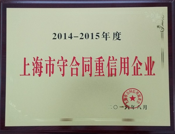2016年8月我司被評為上海市守合同重信用企業(yè)